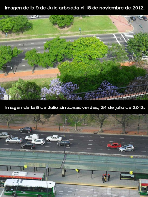 La tradicional postal porteña ya no lucirá con árboles y parques. La arteria urbana más ancha del planeta será patrimonio ahora de los carriles exclusivos para ómnibus.
